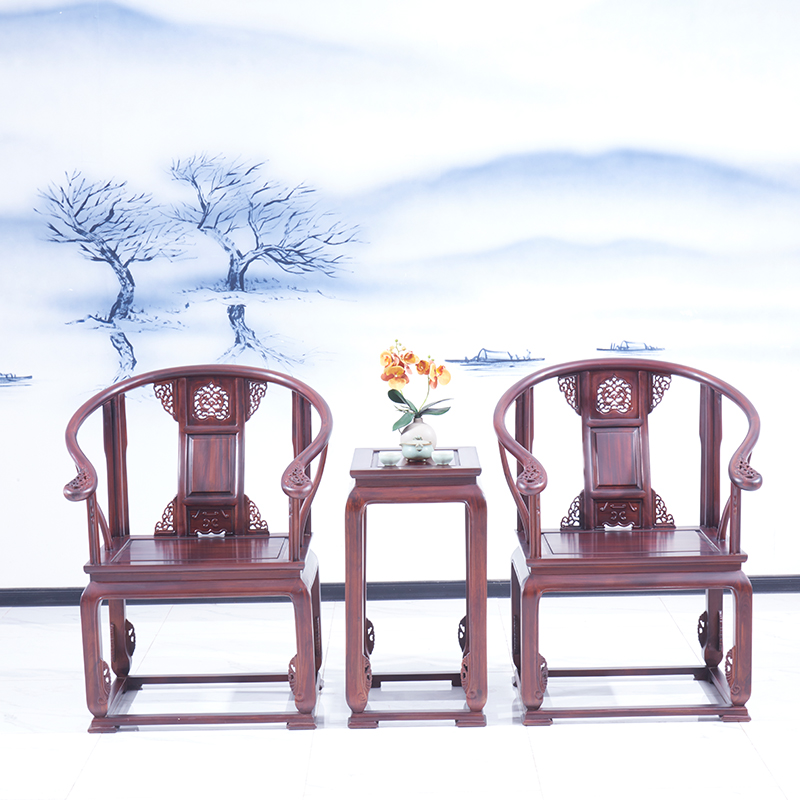 圈椅3件套 中式太师椅花几 红酸枝休闲椅三件套