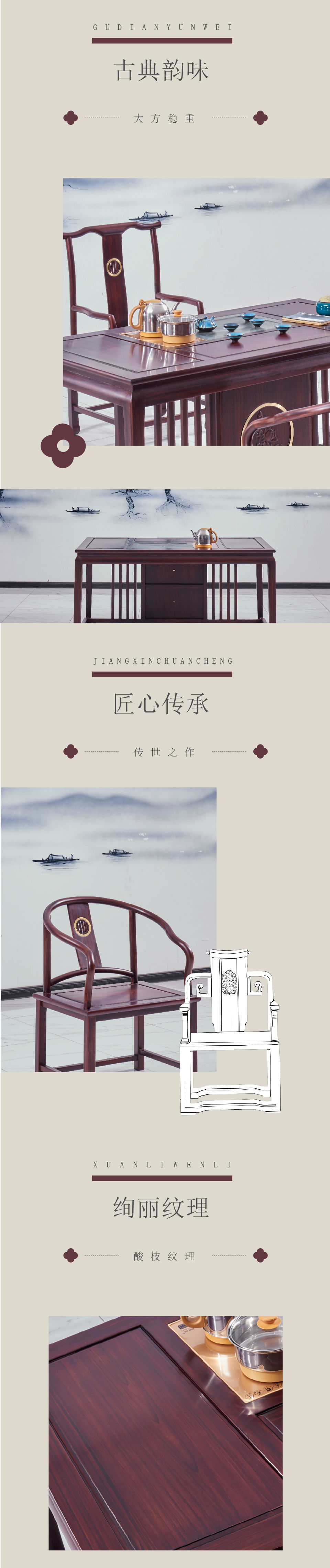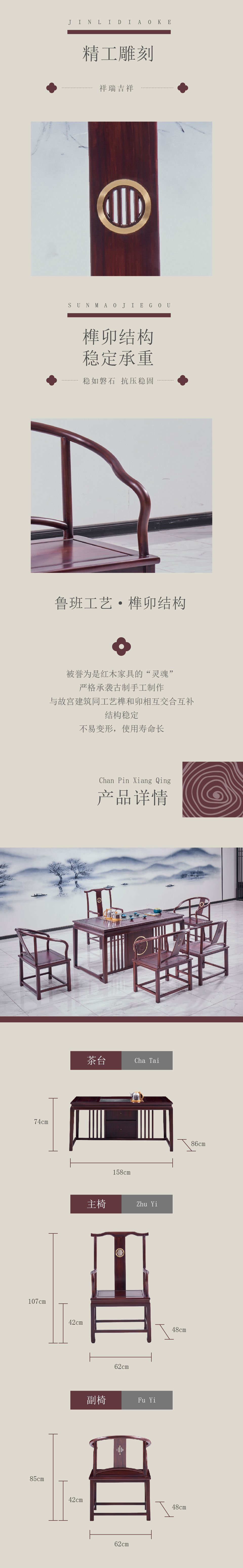 中式风格茶台、主椅、客椅,红木家具、实木中式家具