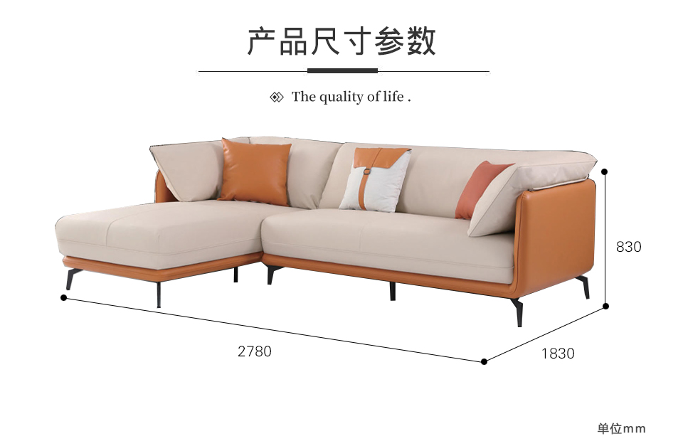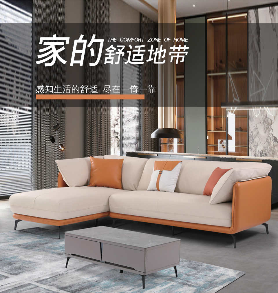 商品名称:伯利好现代风格真皮客厅沙发简约实木L型