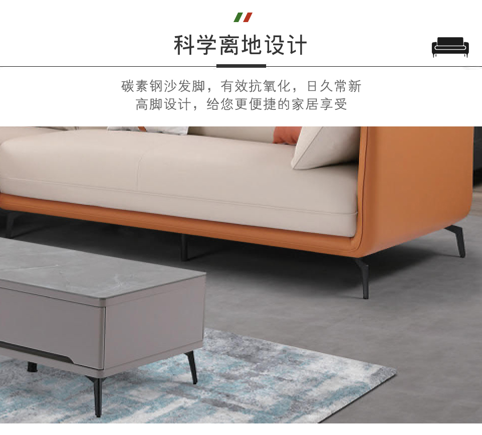 伯利好现代风格真皮客厅沙发头层牛皮简约实木直排